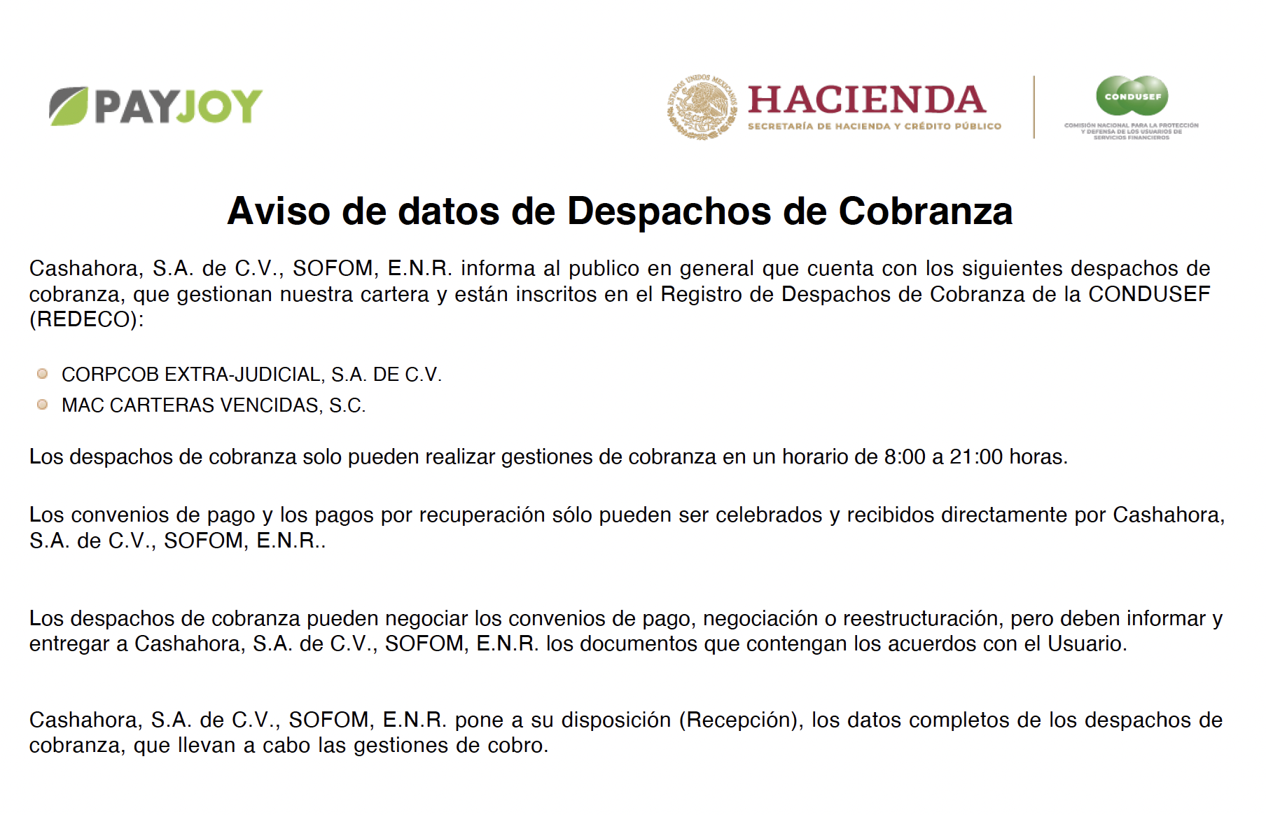 En el Buró de Entidades Financieras encontrarás la información correspondiente a Cashahora, S.A. de C.V., SOFOM, E.N.R. y nuestro desempeño frente a los Usuarios, por la prestación de productos y servicios, el cual corresponde únicamente a ésta institución. Te invitamos a visitar la página web para consulta de información de nuestra Institución, tecleando el nombre de nuestra Institución en el campo de búsqueda (parte superior derecha) en la siguiente liga: https://www.buro.gob.mx/general_gob.php?id_sector=69&id_periodo=40